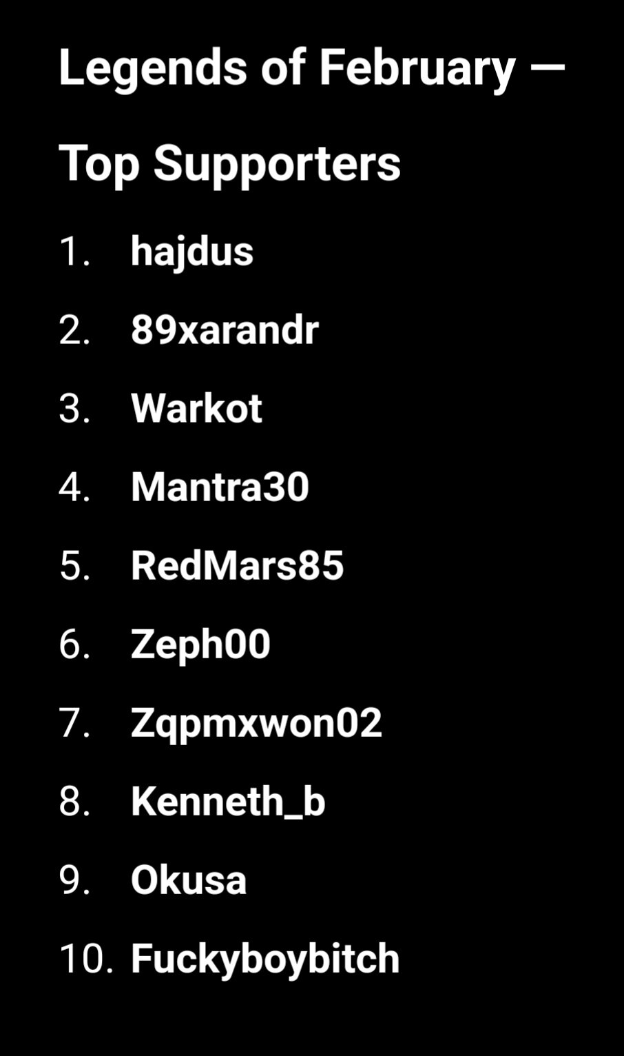 Special shoutout to my February Top 10 Tippers 🏆✨